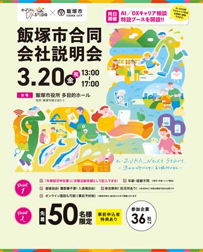 【告知】3/20(金・祝) 飯塚市合同会社説明会に参加します!